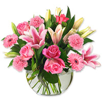 The greatest artists in history always had something that inspired their work. With this amazing mix of fresh lilies and roses with green fillers in a glass vase, you just found your muse.The greatest artists in history always had something that inspired their work. With this amazing mix of fresh lilies and roses with green fillers in a glass vase, you just found your muse.