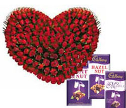 Send across your love in the form of these beautiful heart shape 36 red roses and cadbury(3 x 65gm) chocolate, to let your sweetheart know how much you care !